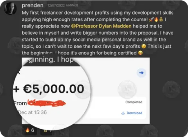 After implementing lessons from the Freelancing Campus, he scaled it to generate $10k-$15k per month.